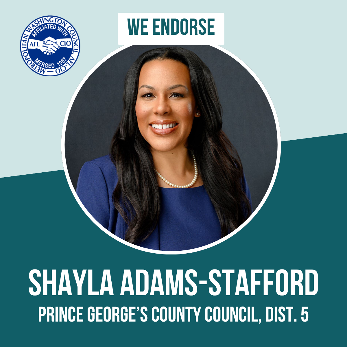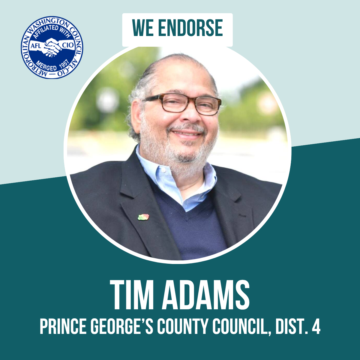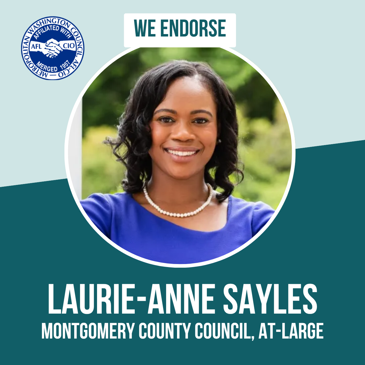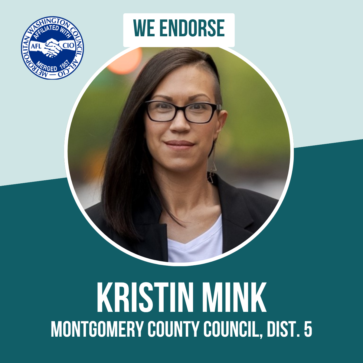 The Metropolitan Washington Council, AFL-CIO endorses the following candidates for office in the 2026 elections in DC, Montgomery County, and Prince George’s County.