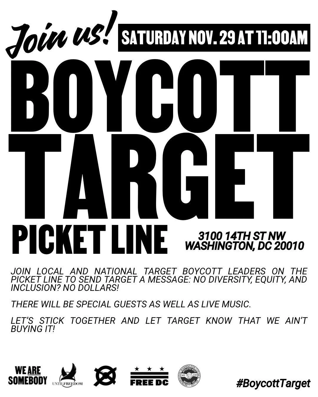 On Black Friday join a solidarity picket with Boycott Target at the company's flagship DC store in Columbia Heights. Bring your own signs and a friend to join you to make it clear #WeAintBuyingIt.