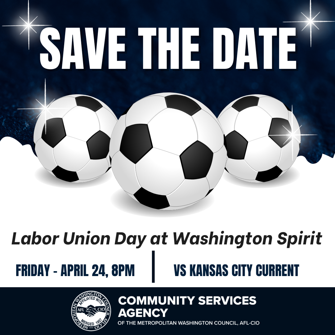 Save the date to join the Community Services Agency (CSA) as the Washington Spirit play the Kansas City Current. Come as a local and invite your family to raise funds for CSA's Emergency Assistance Fund and have a great time. Ticket details to come.