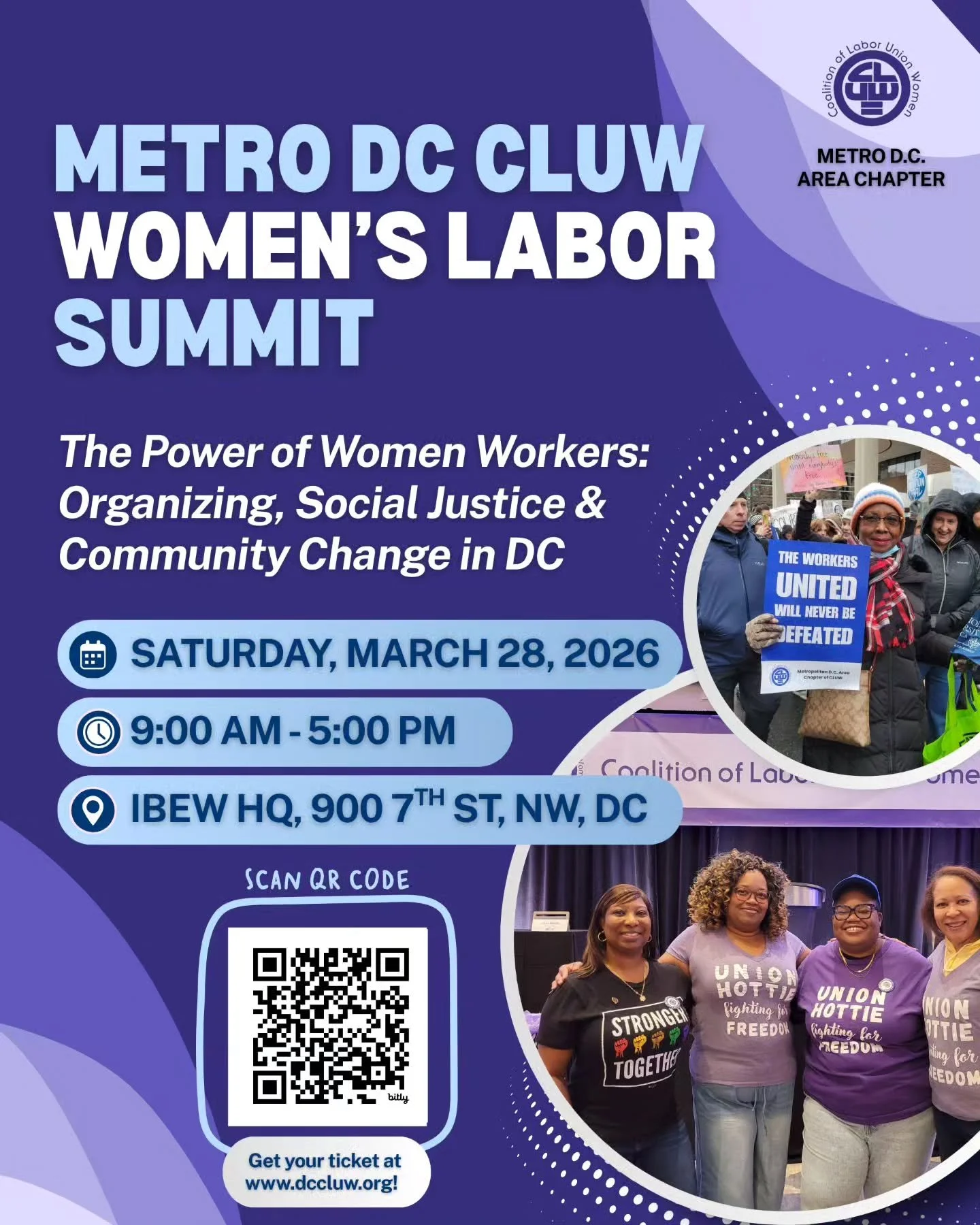 Come celebrate 50 years of Metro DC CLUW and uplift the women and femmes of the DC area labor movement at our upcoming Women’s Labor Summit. More details and register »